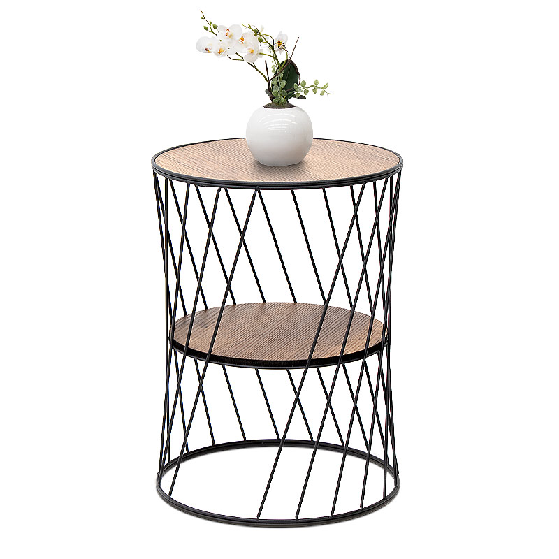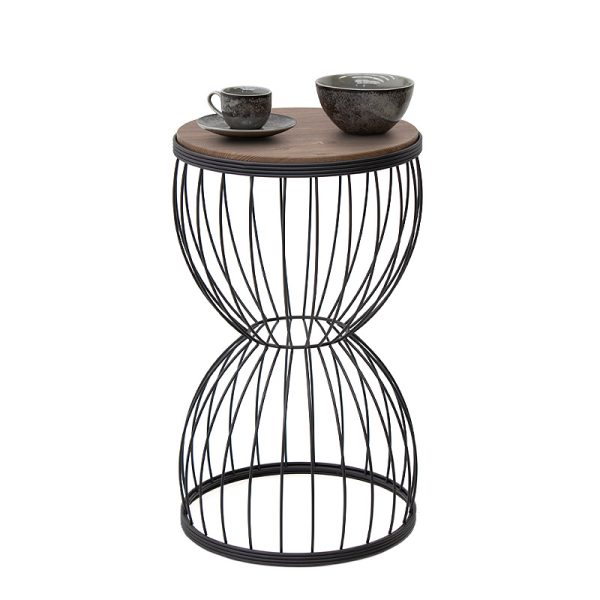 Βοηθητικό τραπεζάκι Jaspin Megapap μεταλλικό – Mdf χρώμα μαύρο – καρυδί 32x32x44εκ.