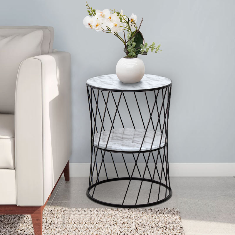Βοηθητικό τραπεζάκι Jaspin Megapap μεταλλικό – Mdf χρώμα μαύρο-λευκό εφέ μαρμάρου 32x32x44εκ.