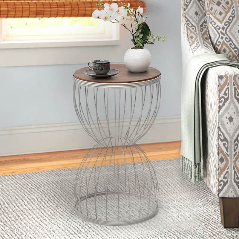 Βοηθητικό τραπεζάκι Pino Megapap μεταλλικό – Mdf χρώμα λευκό – καρυδί 35x35x58εκ.
